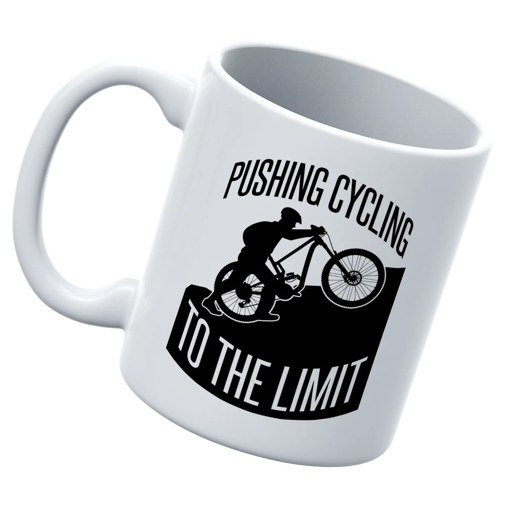 Looking for a fun addition to your caffeinated mornings? This Pushing Cycling To The Limit ceramic mug is sure to put a smile on your face! It’s dishwasher-safe and perfect for everyday use.
