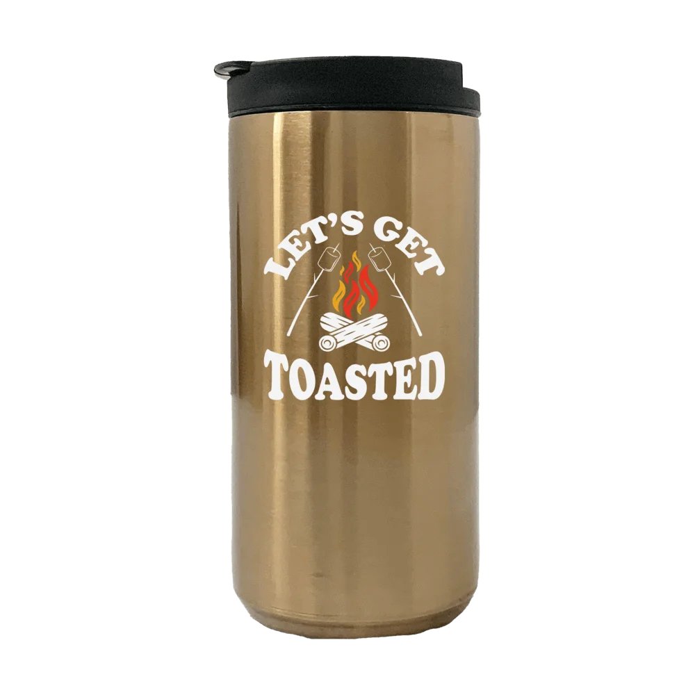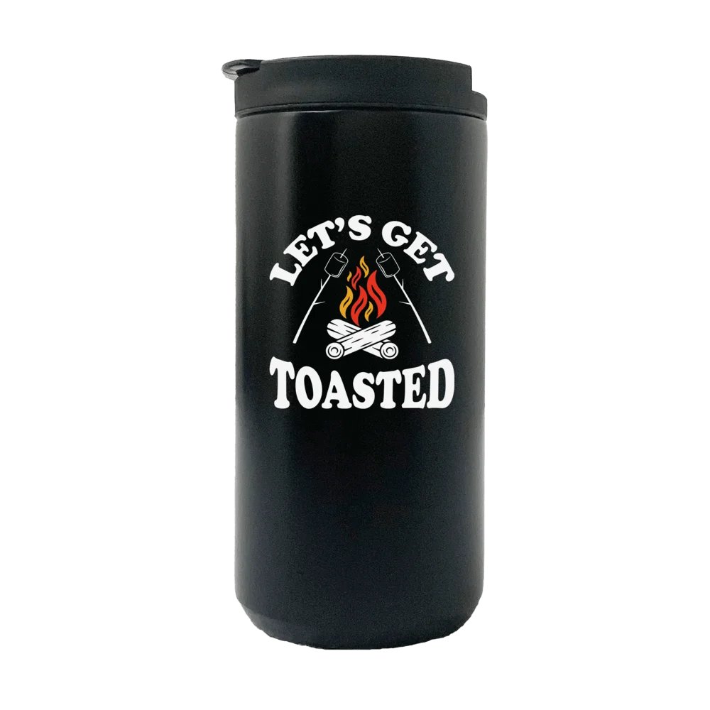 • Let's Get Toasted Camping Fireplaced 14oz Coffee Tumbler with double-walled vacuum insulation technology, keeping your favorite beverages hot for 3+ hours and cold for 9+ hours. Sweatproof, no condensation.