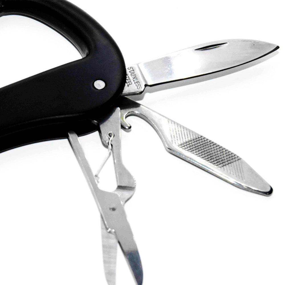 Introducing the Multifunctional Stainless Steel Carabiner Pocket Knife - the perfect tool for outdoor enthusiasts, adventurers, or anyone in need of a reliable and durable pocket knife.