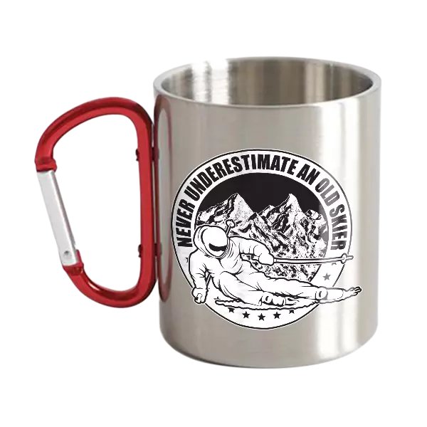 Never Underestimate An Old Skier Stainless Steel Double Wall Carabiner Mug 12oz