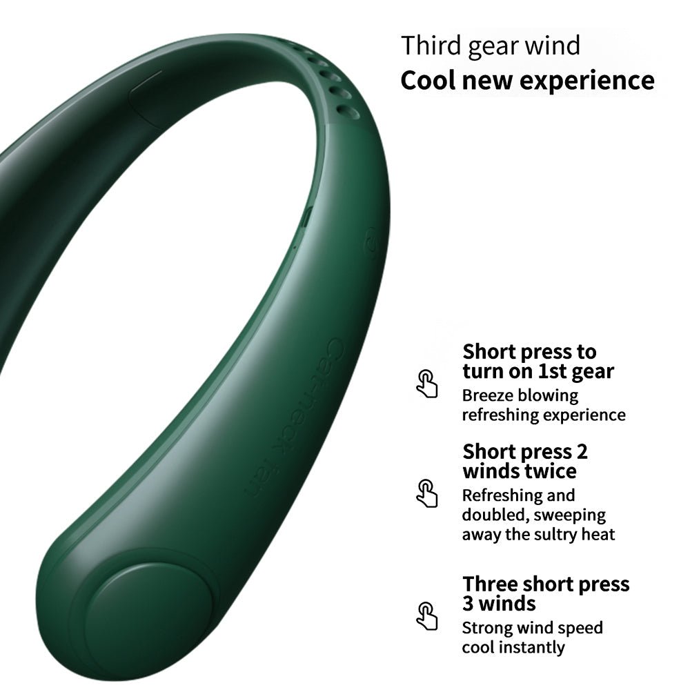 Introducing the Portable Hanging Neck Fan - the perfect way to stay cool and comfortable on all your outdoor adventures! This innovative neck fan is designed to provide you with a refreshing breeze wherever you go, without the need for bulky or cumbersome handheld fans.