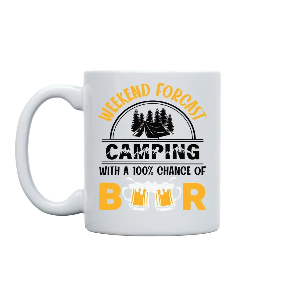 Looking for a fun addition to your caffeinated mornings? This Weekend Forecast, Camping with 100% Beer ceramic mug is sure to put a smile on your face! It’s dishwasher-safe and perfect for everyday use.