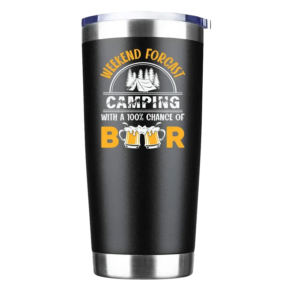 Weekend Forecast, Camping with 100% Beer 20oz Insulated Vacuum Sealed Tumbler